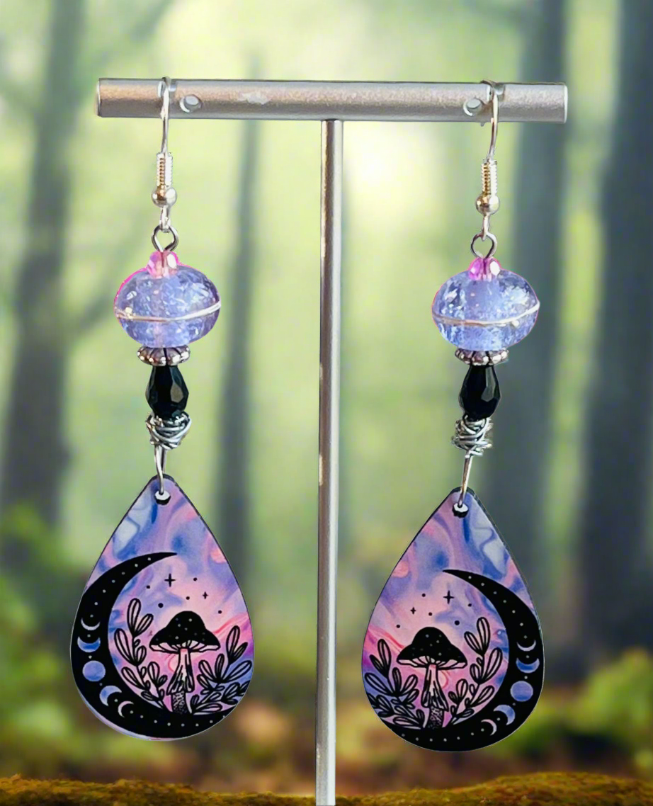 These are about 3 inches long. They are very lightweight. Featuring beautiful glass Lampwork beads by and these lovely mushroom drops.